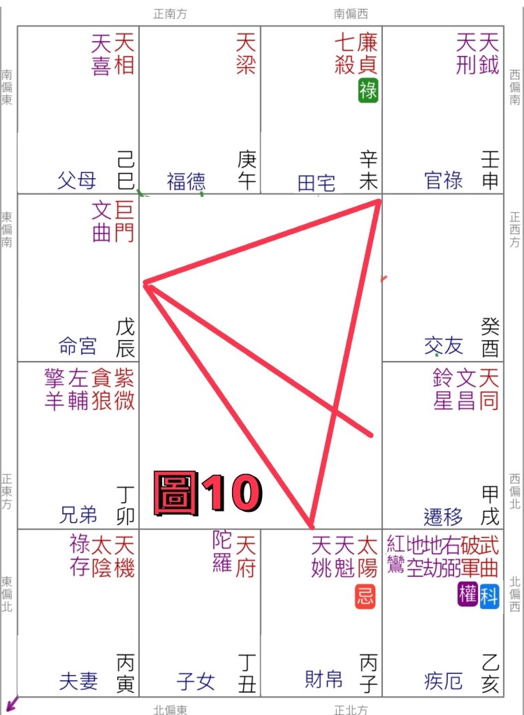 這張是圖9的顛倒盤,比圖9多一顆心,主要是福德宮的差異。不過圖10今年會感受到可支配的錢變少了,沒錯!錢拿去保養身體了,抽脂、除眼袋、 皮秒、美白針,現在已經沒有醜女人只有窮女人!