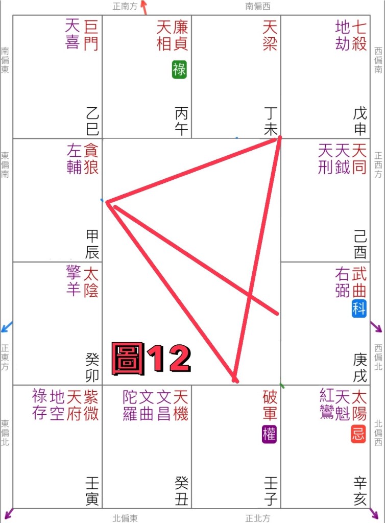 - 十二是十一的顛倒盤,整體狀況也不錯,但紫微天府的位置變成在夫妻宮,所以給4分。