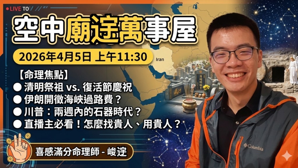 #空中廟䢓萬事屋 #峻䢓命理 #清明節 #復活節 #川普 #荷姆茲海峽 #紫微斗數 #貴人 #父母宮