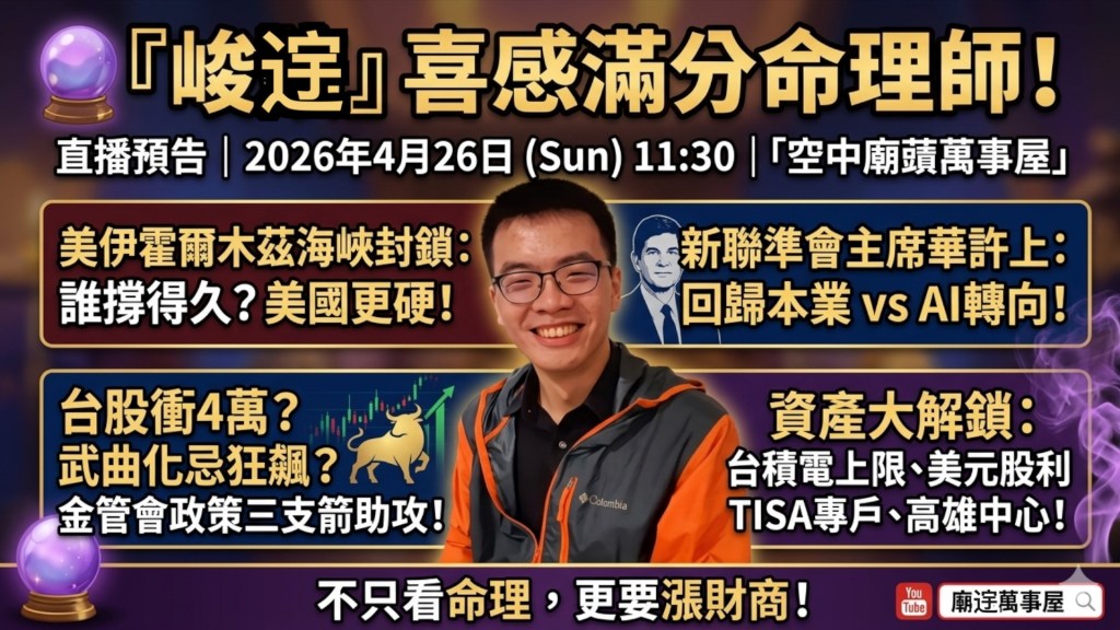🚀 台股衝四萬的底氣?聯準會新掌舵人是誰?財商與命理的跨界週報!